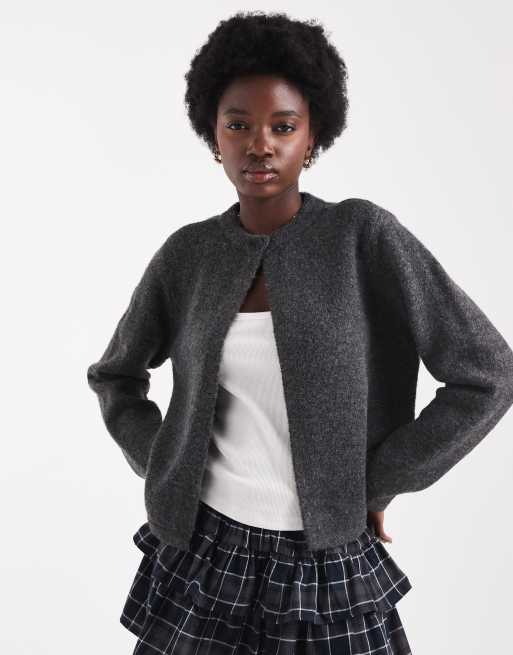 ONLY - Mørkegrå cardigan med rund hals og én knap