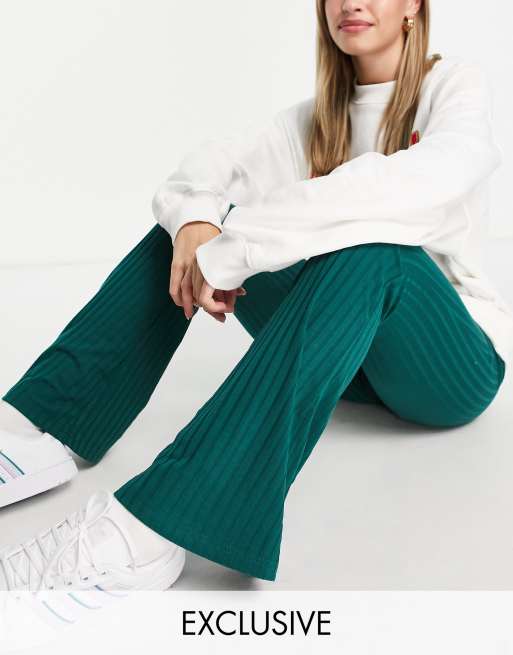 Only - Mørkegrønne ribstrikkede bukser med svaj - Kun hos ASOS