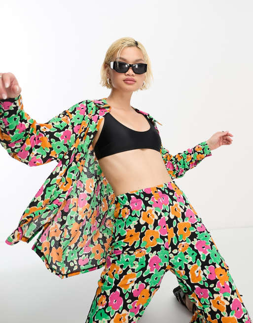 Only - Oversized skjorte med multifarvet blomstermønster - Del af sæt
