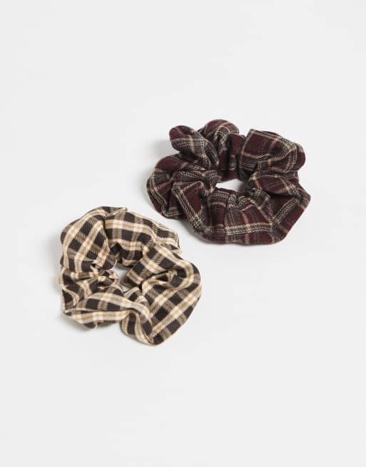 ONLY - Pakke med 2 brune og bordeaux scrunchies med tern