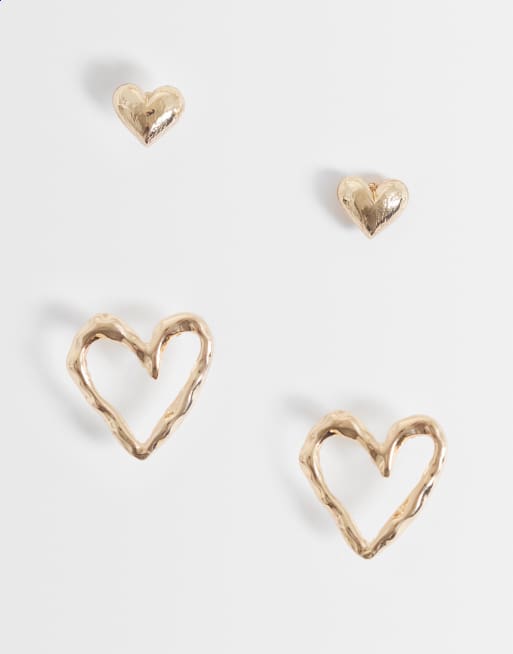 ONLY - Pakke med 2 par guldfarvede øreringe med hjertedesign