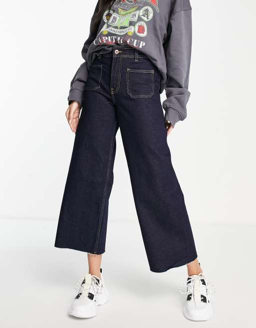 Only - Sylvie - Cropped, højtaljede jeans med vide ben i mørkeblå