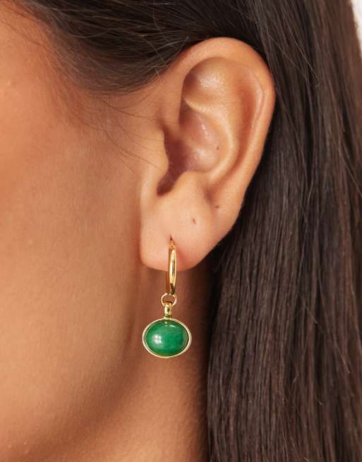 Orelia - 18 karat guldbelagte hoop-øreringe med hængende vedhæng med halvædelsten