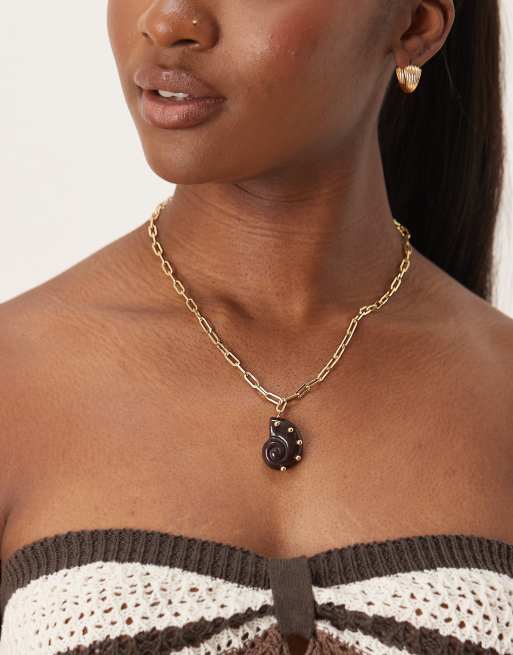 Orelia - Guldbelagt kædehalskæde med brunt statement-vedhæng i resin