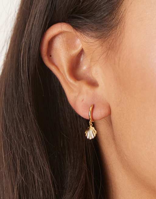 Orelia - Mikro-hoops med muslingevedhæng i lys guldbelægning