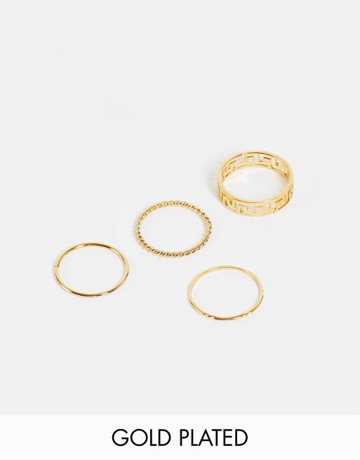 Orelia - Multipakke med 4 forgyldte ringe med indgraveringer i græsk stil