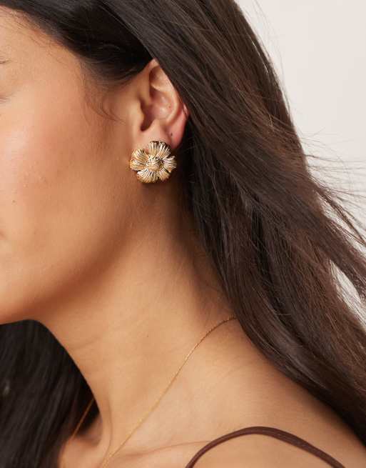 Orelia - Ørestikkere med statement-blomst med tekstur og 18 k guldbelægning