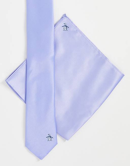 Original Penguin - Lyseblåt, ensfarvet slips med lommeklud