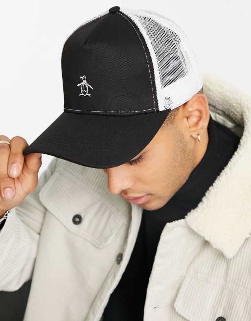 Original Penguin - Sort og hvid trucker-kasket med bagside i mesh