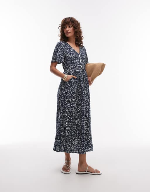 & Other Stories - Blå midaxi-skjortekjole med tørklædekant forneden