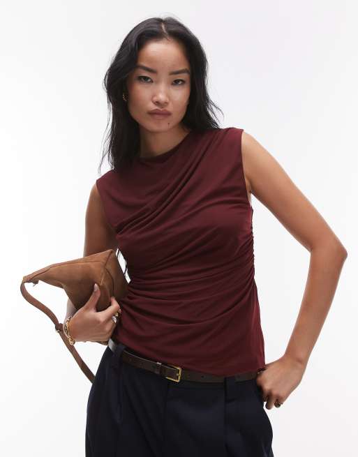& Other Stories - Bordeauxrød top i mesh med draperet detalje