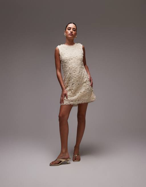 & Other Stories - Cremehvid minikjole med hulmønster og perleudsmykning i tyl