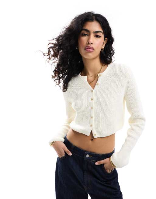 & Other Stories - Cropped cardigan med knapper foran i hvid ribstrik