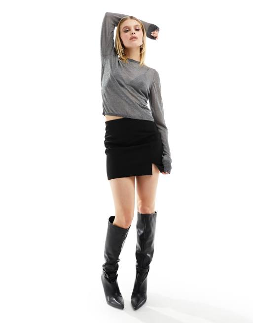 & Other Stories - Gennemsigtig langærmet top med glimmer i metallisk sølvfarve
