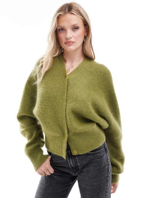 & Other Stories - Grøn vamset strikket cardigan i mohair-uldblanding