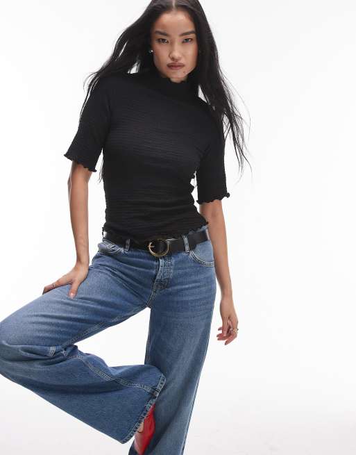 & Other Stories - Højhalset sort jerseytop med albuelange ærmer og rå kanter