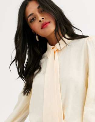 & Other Stories - Jacquard-bluse med sløjfe i blød gul