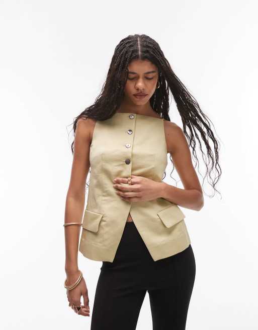 & Other Stories - Lysegul habitvestetop med firkantet hals i hørblanding