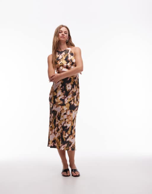& Other Stories - Midikjole med skråsnit og sløret blomsterprint i satin