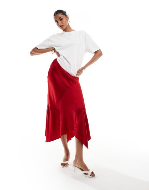 & Other Stories - Midinederdel i rød satin med asymmetrisk snit og forskellige paneler