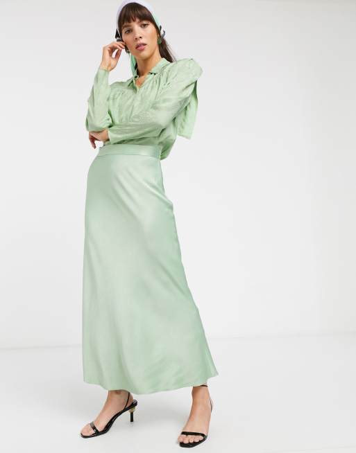 & Other Stories - Mintgrøn satin midinederdel