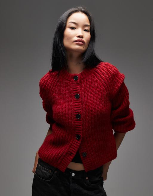 & Other Stories - Rød cardigan med ballonærmer i uld- og alpakablanding i chunky strik
