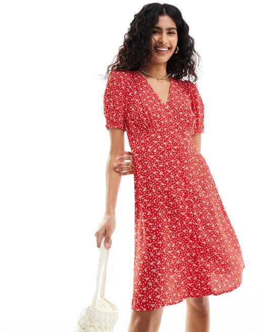 & Other Stories - Rød minikjole med knapper og småblomstret print