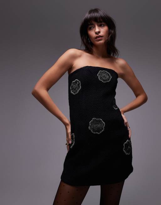 & Other Stories - Sort bandeau-minikjole med blomsterudsmykninger