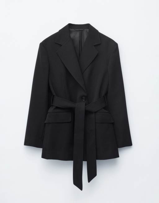 & Other Stories - Sort blazer i uldrigt stof med bælte