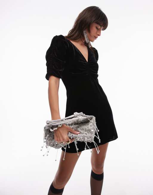 & Other Stories - Sort minikjole i velour med rynket front øverst og pufærmer