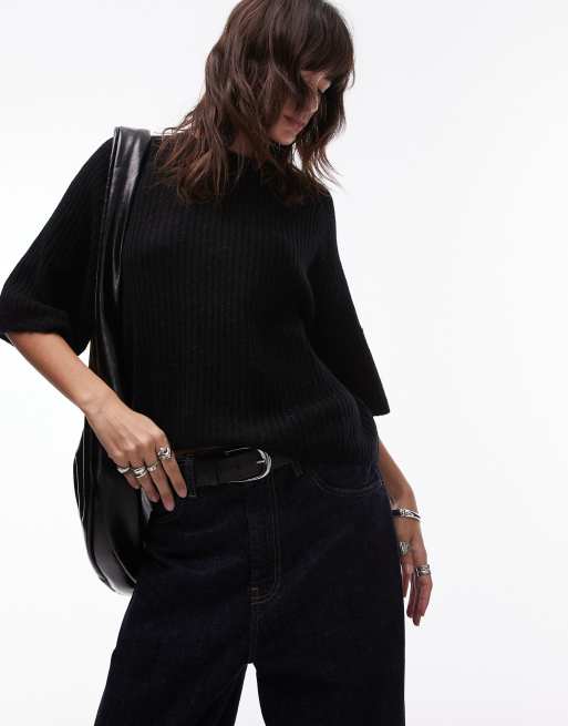 & Other Stories - Sort strikket trøje med korte ærmer i alpaka