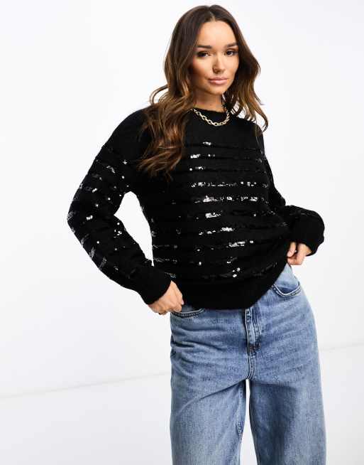 & Other Stories - Sort sweater med pailletstriber i vamset uldblanding