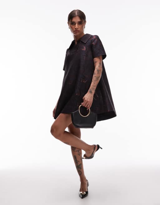& Other Stories - Swing-minikjole med krave og tonet sommerfuglemønster i metallisk jacquard
