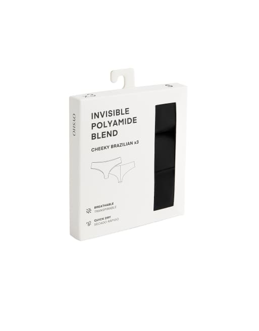 Oysho - 3 par sorte usynlige brasilianske briefs med cheeky snit i polyamidblanding