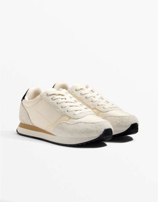 OYSHO - Beige sneakers i nylon med kontrasterende sål