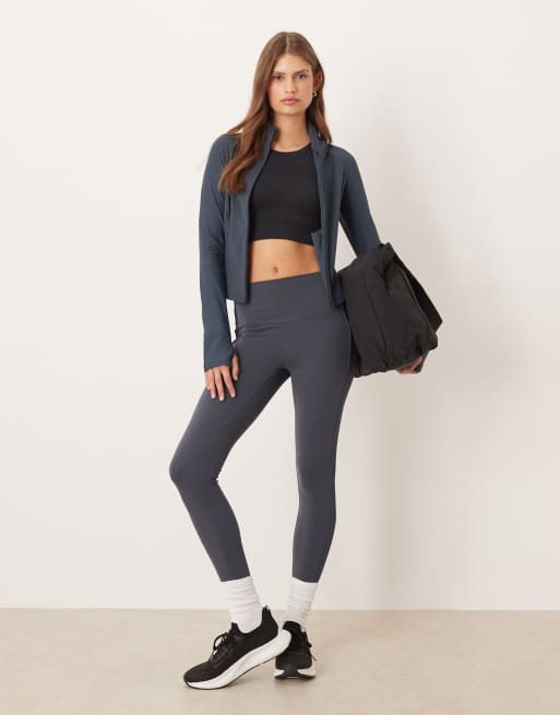 OYSHO - Comfortlux - Grå ankellange leggings på 65 cm med høj talje og ribber i siderne