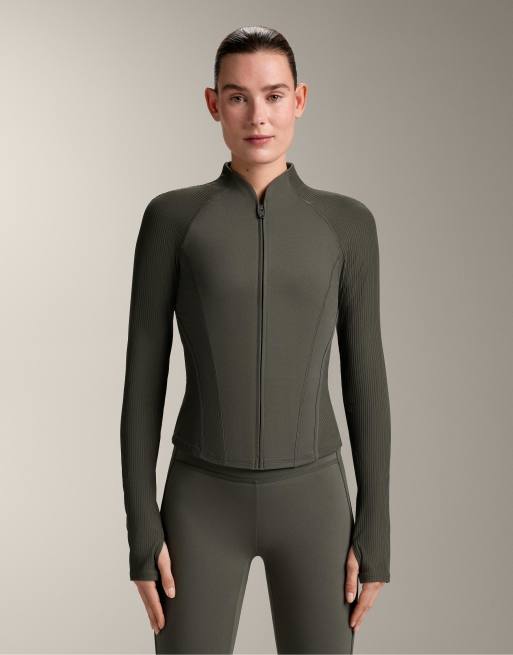 OYSHO - Comfortlux - Militærgrøn ribstrikket tech-jakke