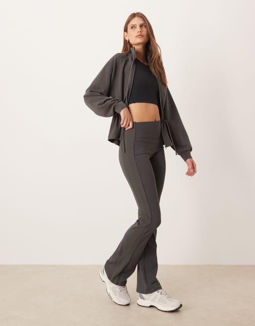 OYSHO - Comfortlux - Mørke antracitfarvede bukser med høj talje samt svaj og ribber i siden