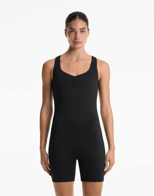 OYSHO - Comfortlux - Sort kort jumpsuit med krydsende ryg