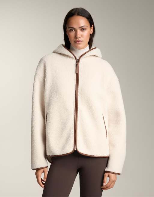 OYSHO - Ecrufarvet jakke i imiteret lammeskind med hætte
