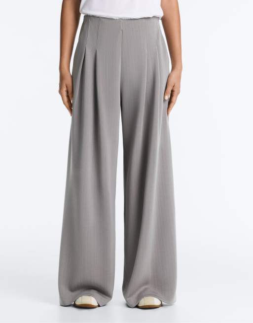 OYSHO - Grå lange bukser med plisseringer i blødt modal