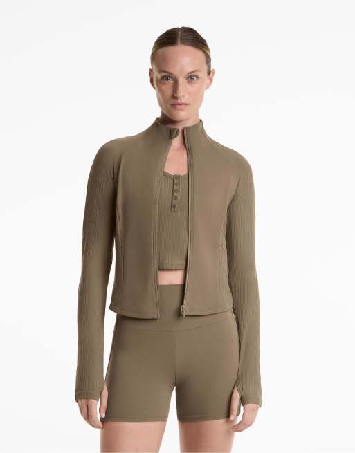 Oysho - Grå og let samt varm teknisk jakke med ribber