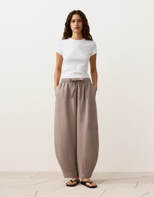 OYSHO - Gråbrune ballonbukser i 100% hør