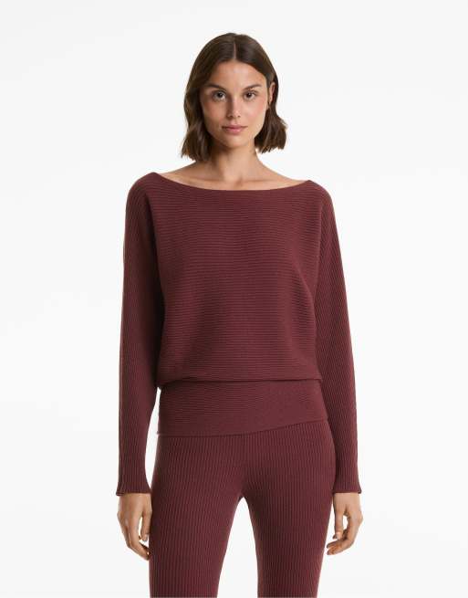 OYSHO - Grøn ribstrikket offshoulder-trøje