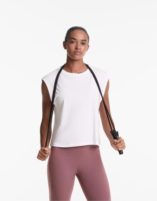 Oysho - Hvid ærmeløs sømløs T-shirt i bomuldsblanding