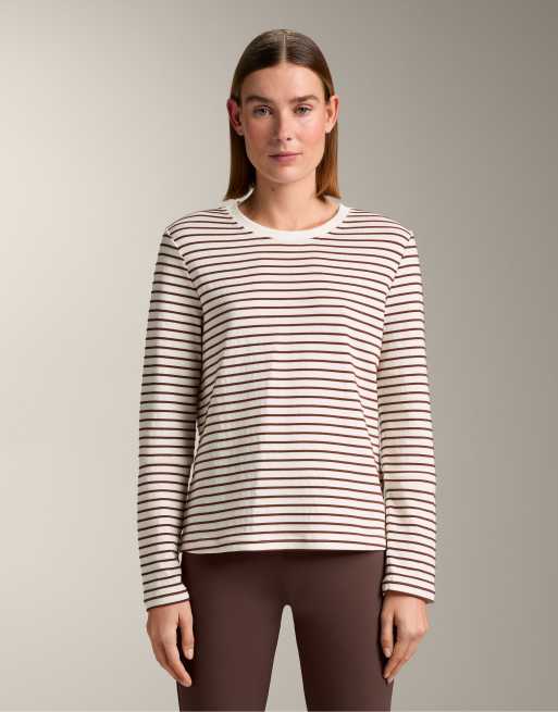 OYSHO - Langærmet T-shirt i bomuldsblanding med brune striber
