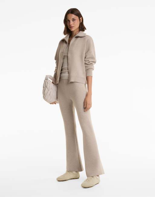 OYSHO - Lyse minkfarvede strikkede bukser med svaj