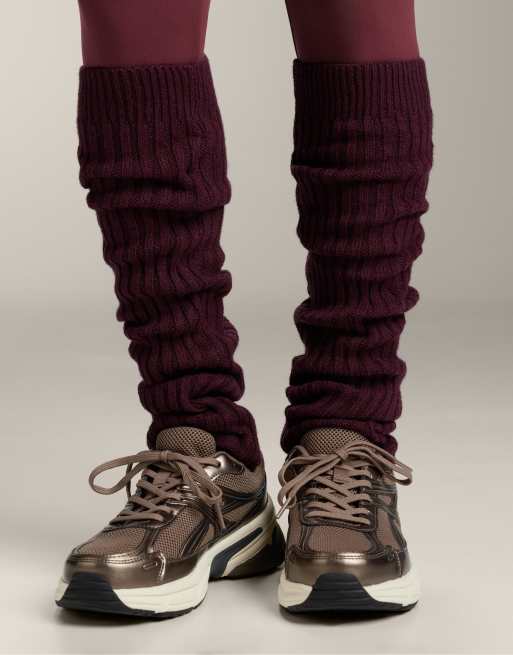 OYSHO - Mørk kastanjebrune benvarmere i viskoseblanding