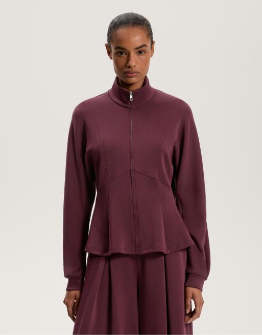 OYSHO - Mørk rødbrun jakke med figursyet talje i blødt modal