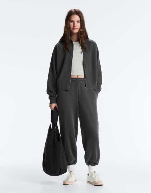 OYSHO - Mørkegrå joggingbukser i bomuldsblanding